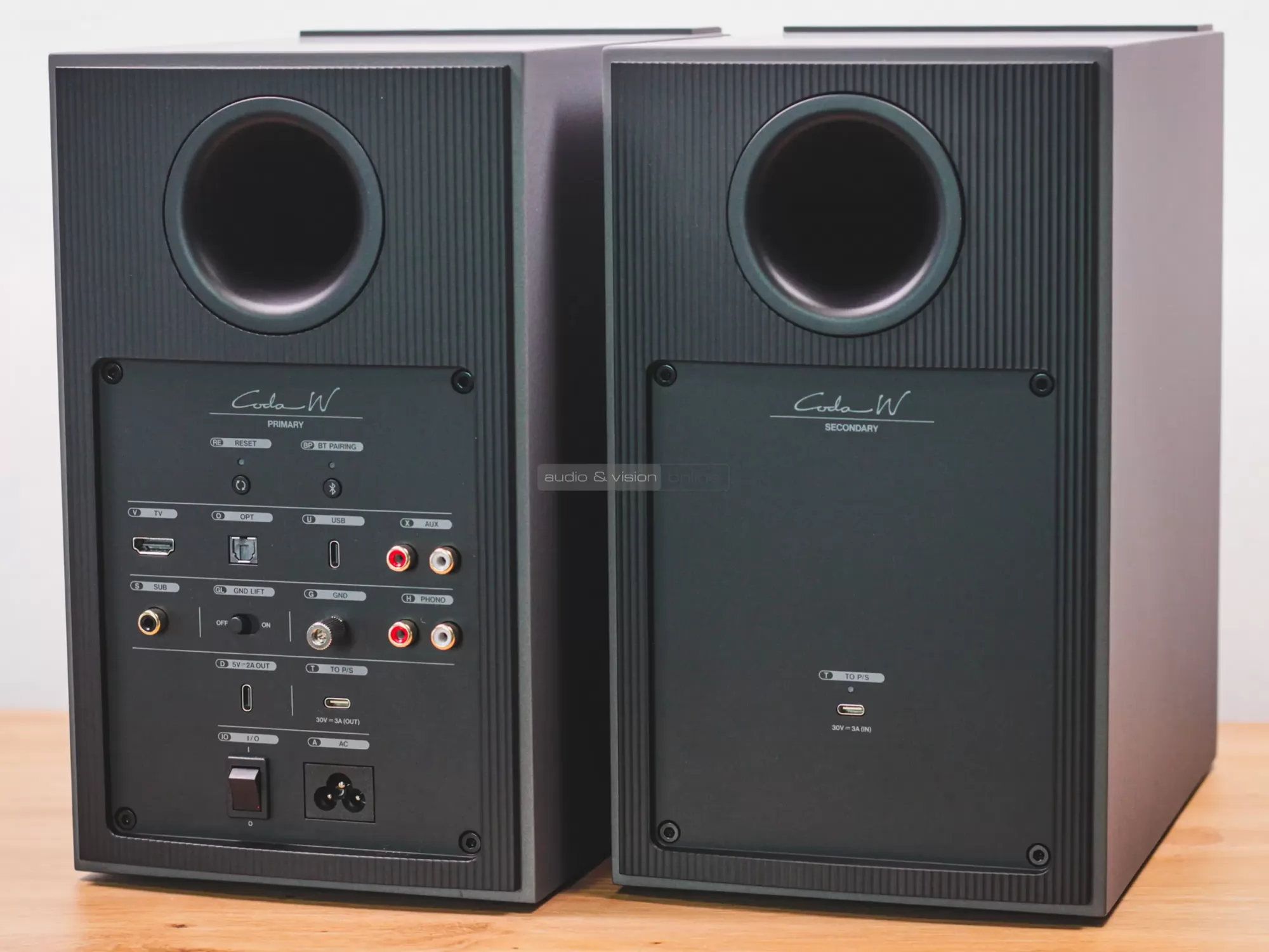 Kimenetek: RCA kimenet mélysugárzóhoz, USB-C töltéshez, USB-C a második hangfalhoz