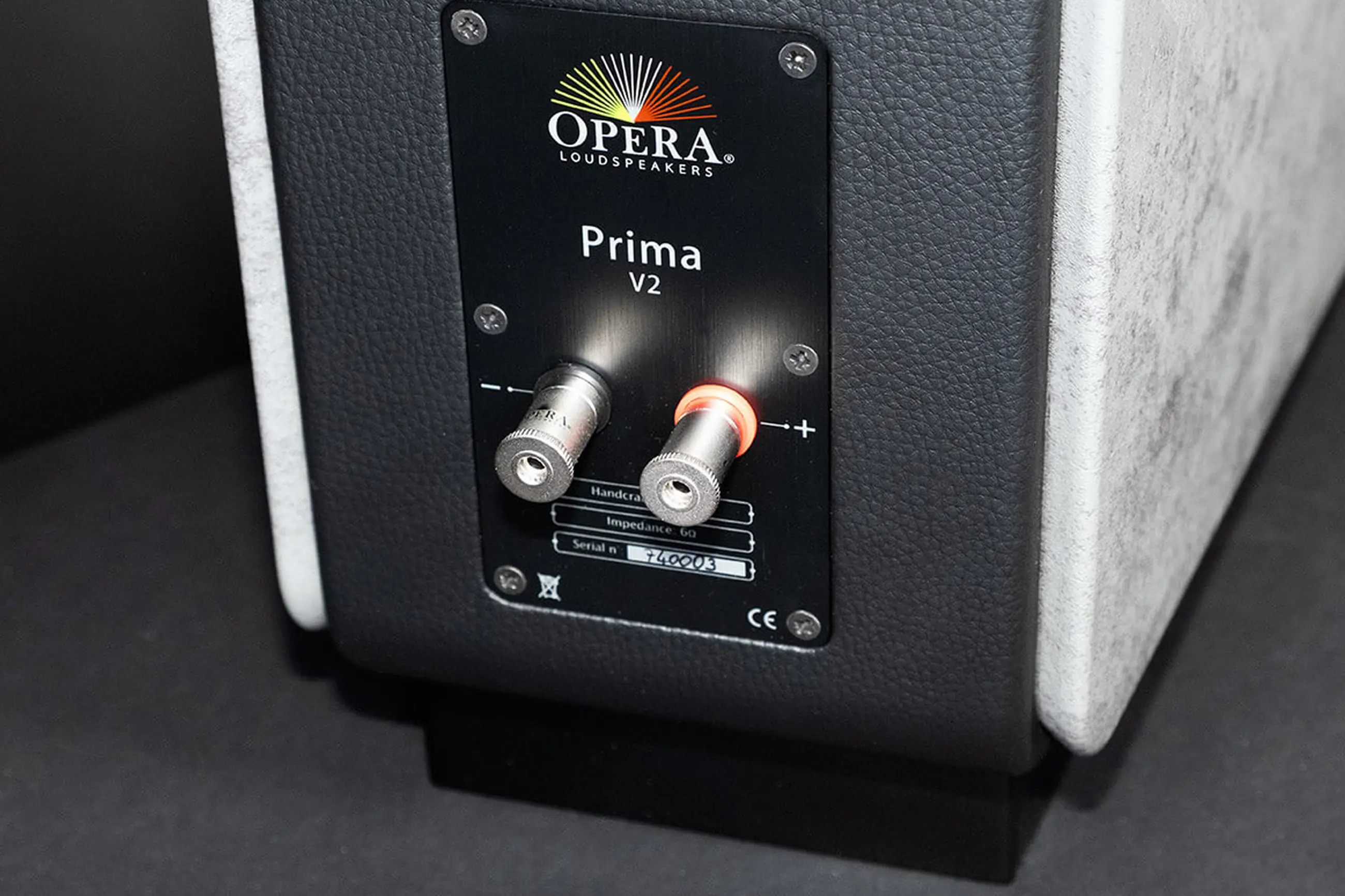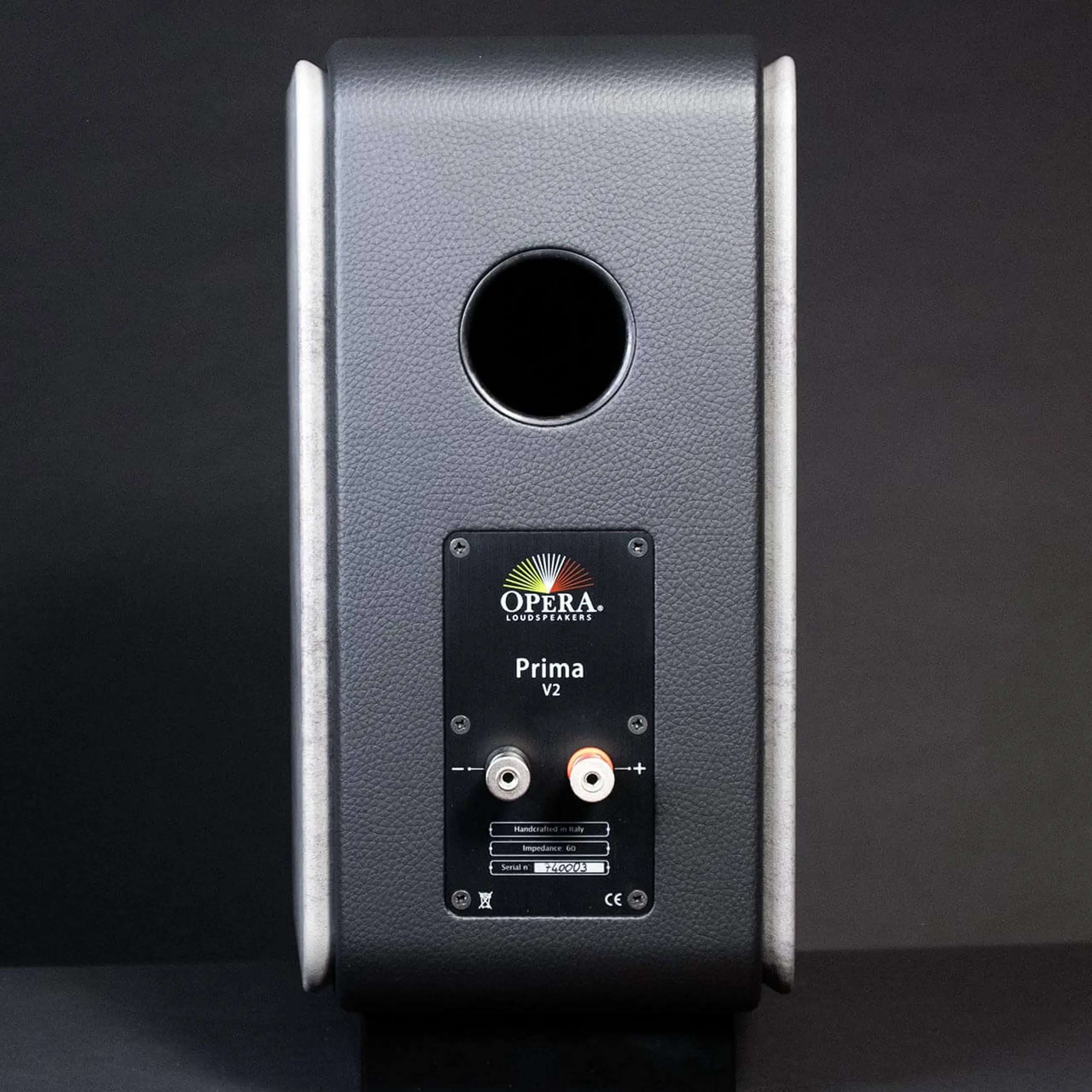 A kétutas Opera Prima V2 basszreflex portja ezúttal hátra került, az elhelyezését, méretét és kialakítását szintén gondosan hangolták össze, hogy a mélytartomány hangzása megmaradjon gyorsnak és koherensnek. Bemenetből egy párat találunk, amelyek roppant stabilak, fogadják a banándugókat, és az egészet egy külön külső panelra helyezték, ahol a sorozatszám is olvasható.