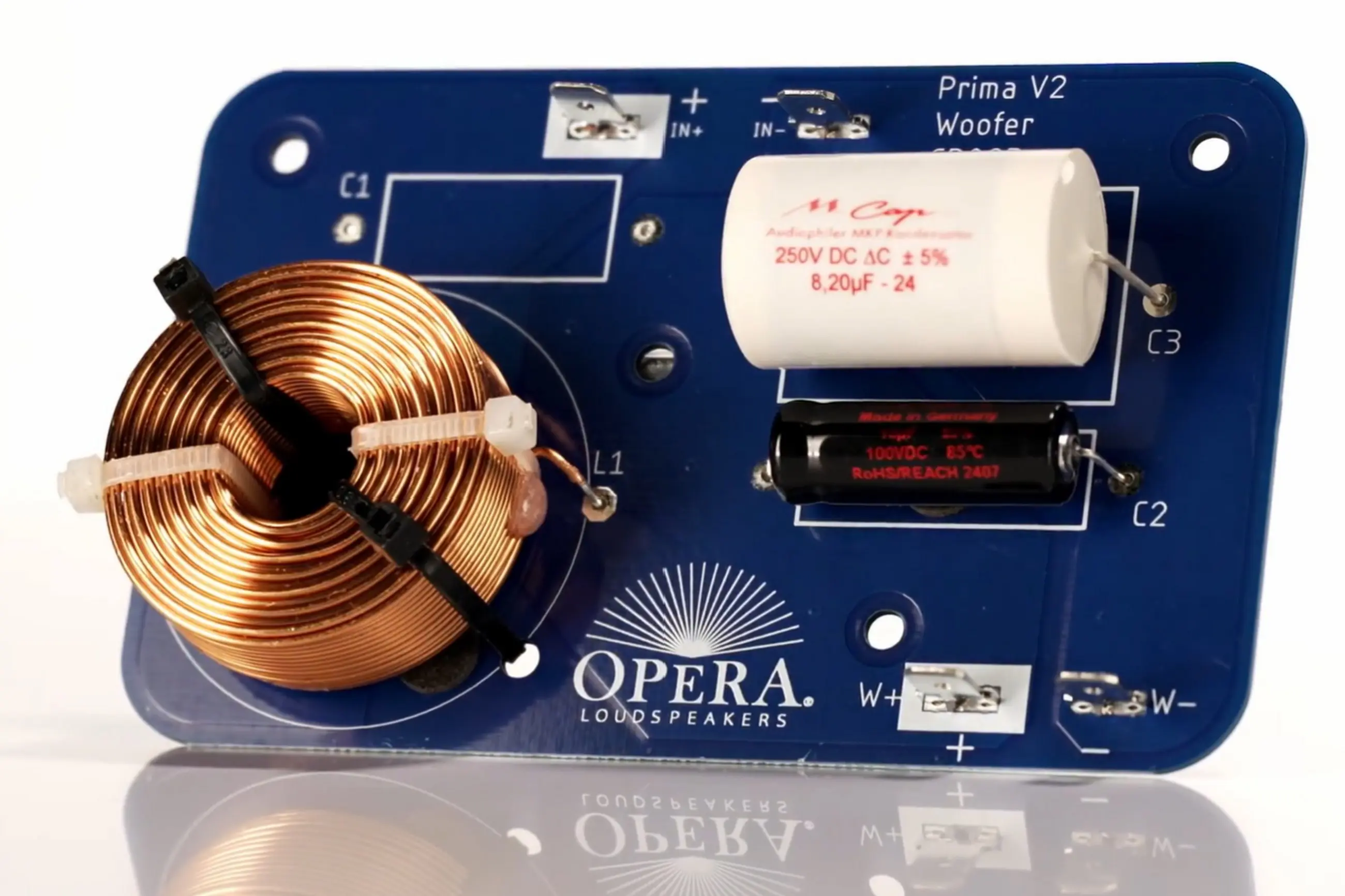 Az Opera csapata Vishay ellenállásokat, Mundorf kondenzátorokat és egyedi induktorokat használt, a teljes keresztváltó egy "házon belül" tervezett NYÁK-ra van szerelve, optimalizált elrendezéssel, a belső vezetékek nagy tisztaságú, vastag rézből készültek, biztosítva a teljes dinamika-tartományt és tisztaságot, továbbá a mérnökök az alkotása során a műszerek mellett elsősorban a fülükre hallgattak, tehát addig kísérleteztek, amíg elégedettek nem lettek az eredménnyel.